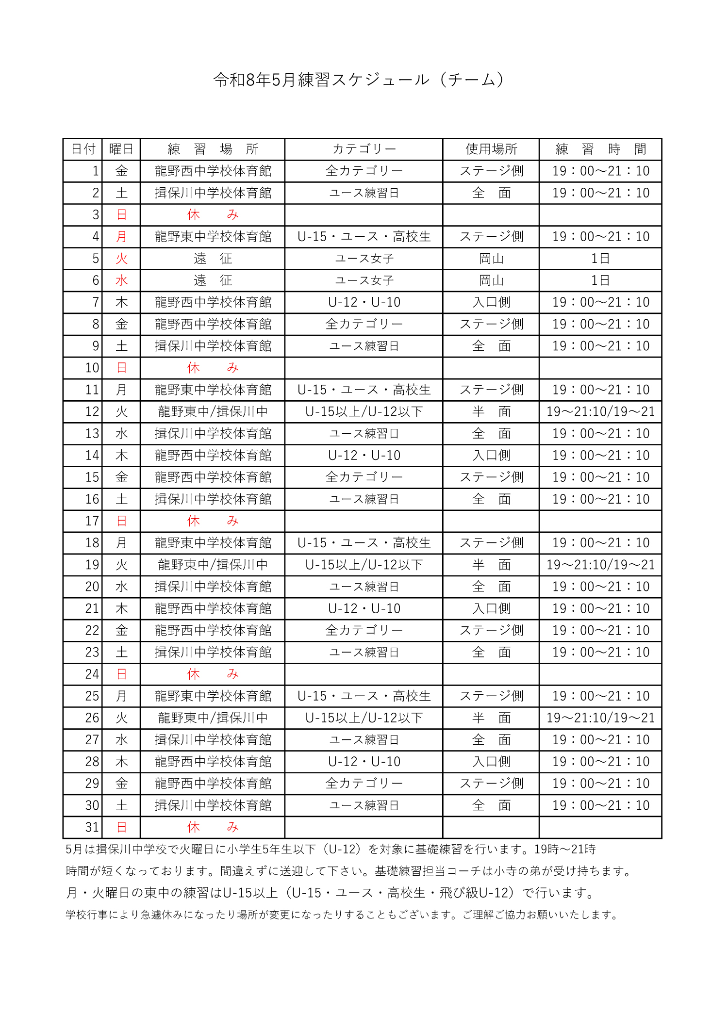 さて、2026年5月の練習スケジュールをPDFで公開いたしました!
